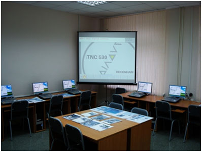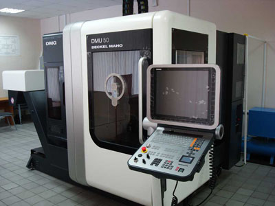 2. 5–ти осевой фрезерный обрабатывающий центр немецкого концерна DMG (Deckel Maho Gildemeister) модели DMU 50. Станок оснащен системой ЧПУ Heidenhein iTNC-530. Так же имеется учебный класс на 10 рабочих мест, оснащенный системами ЧПУ Heidenhein iTNC-530, Siemens 840D Power Line, программным обеспечением Shop Turn и Shop Mill и всеми виртуальными моделями станков концерна DMG поставленными на Омские предприятия.