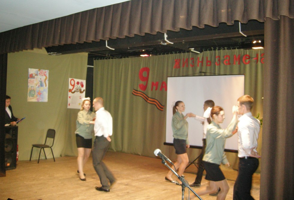 Прекрасным украшением мероприятия явились великолепно исполненные студентками НХИ, ФГО танцевальные композиции, посвящённые Дню Победы. Практически во всех мероприятиях принимает участие этот самобытный танцевальный коллектив ( руководитель- студентка 3 курса НХИ Спожайкина Евгения).