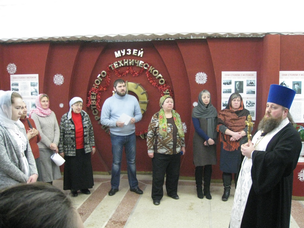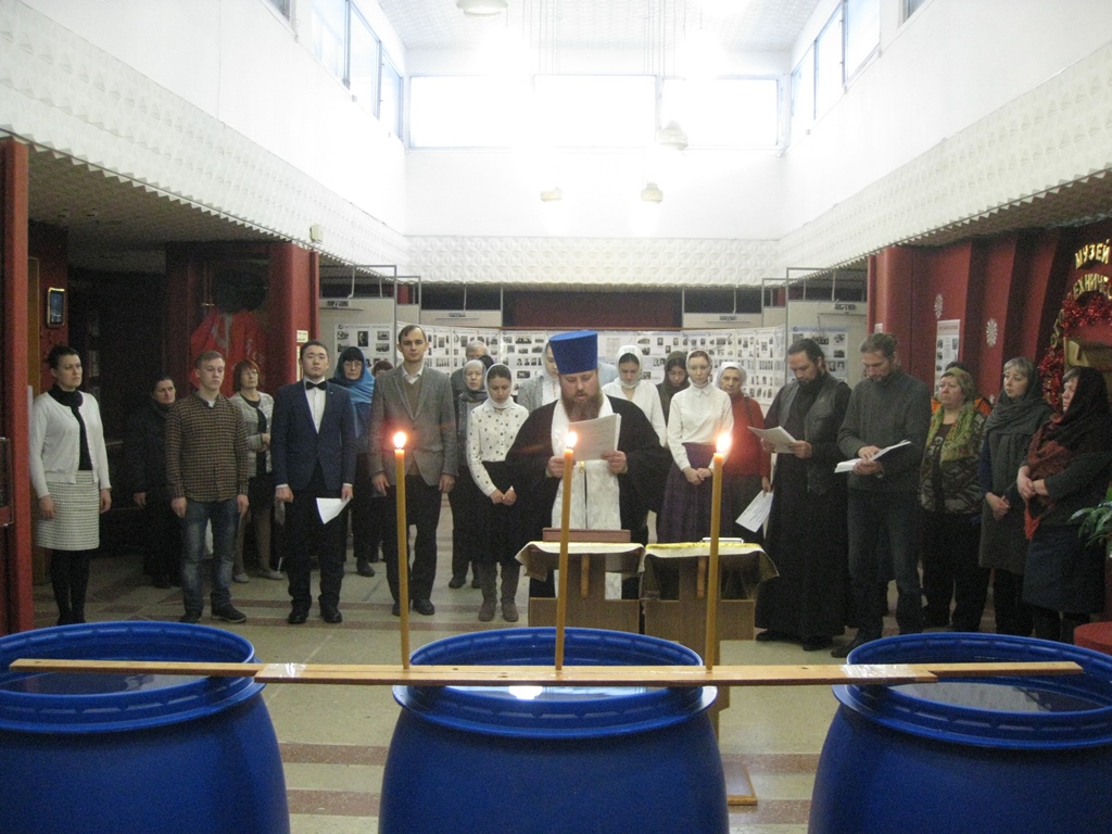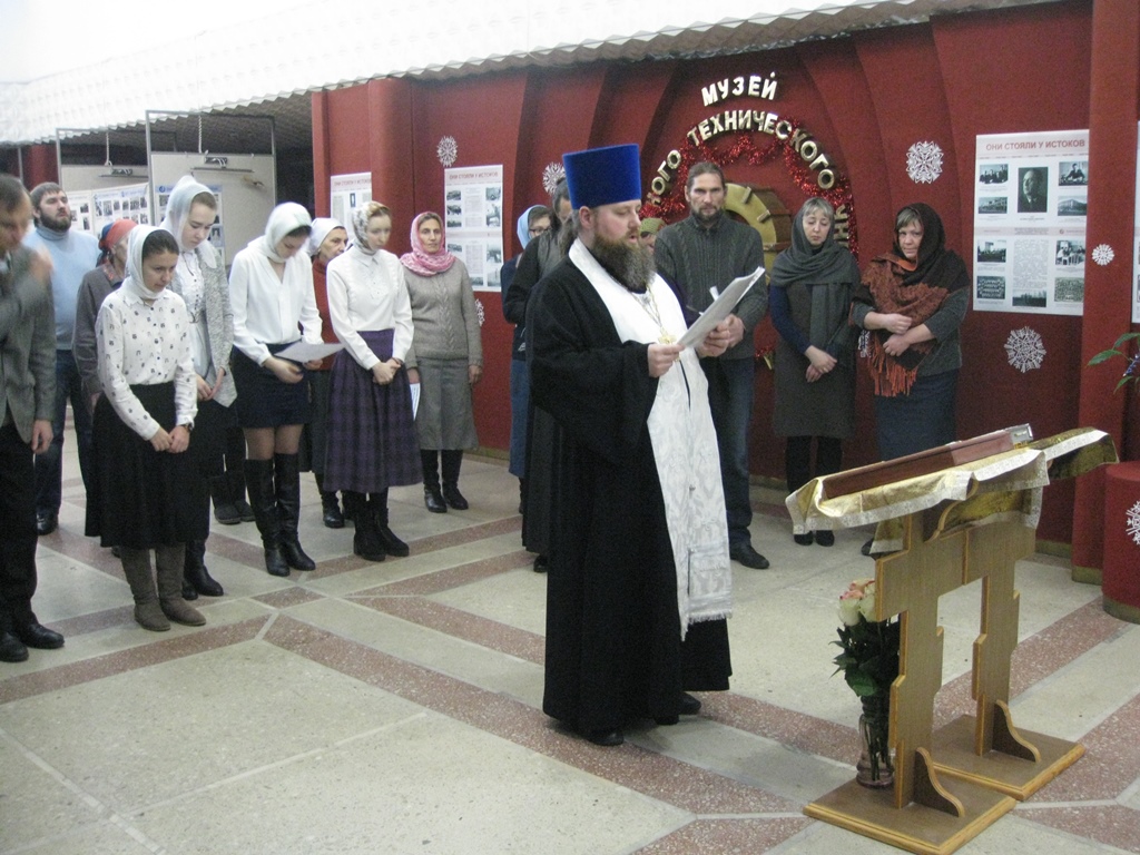 19 января в день празднования Богоявления – Крещения Господня в музее истории технического университета настоятель Владимиро-Ольгинского прихода при ОмГТУ священник Роман Богатов совершил освящение воды великим чином.