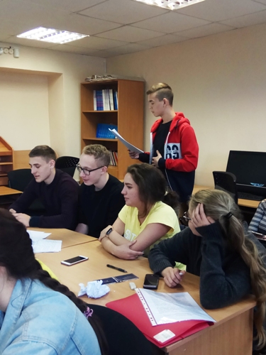 Потом состоялся семинар-практикум «Духовное наследие Кирилла и Мефодия». Ведущая семинара – старший преподаватель кафедры «История, философия и социальные коммуникации», к.ф.н. Е.А. Калач. В ходе семинара-практикума был показам учебный фильм-викторина. Затем руководитель СОО «Истоки» ОмГТУ Т.И. Белозерова дала разъяснения по вопросам истории создания славянской азбуки и старославянского языка, рассказала о вкладе святых братьев в развитие славянской письменности и культуры. Во второй части семинара студентам была предложена групповая работа: составить назидание потомкам, используя старославянско-русский словарь. Ребята с интересом подошли к практической части. Составленные обращения поразили своей красотой и емкостью.
