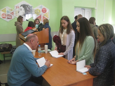 По окончании беседы ребята получили в подарок книги. Всем желающим писатель оставил памятный автограф.
