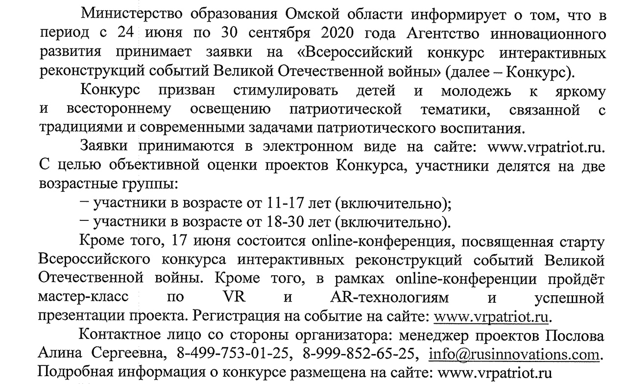 Всероссийский конкурс интерактивных реконструкций событий Великой Отечественной войны