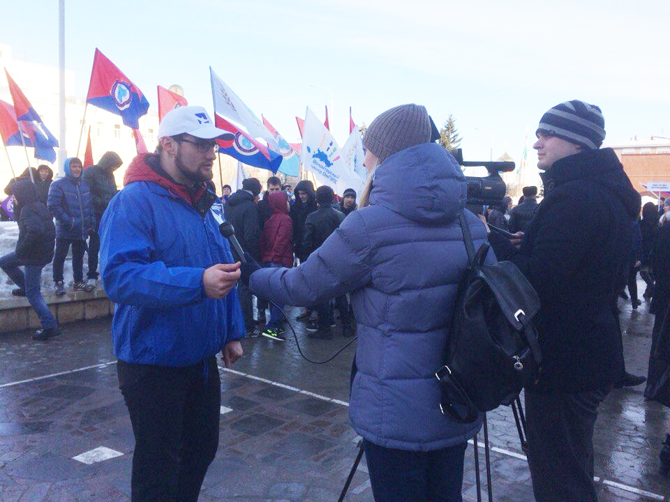 Участниками митинга стали также более 100 студентов Омского государственного технического университета и добровольцев омского отделения волонтёрского корпуса 70-летия Победы. «Мы часть одного сильного народа, все волонтеры ,которые пришли на праздник были там по велению души и зову сердца», – рассказывает координатор регионального отделения Павел Шильников.