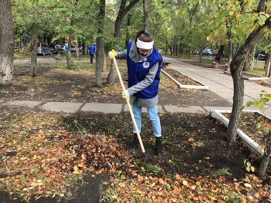 В этом году экологический субботник посвящен памяти погибших во времена Великой Отечественной войны. В его рамках 20 студентов машиностроительного института на территории сквера братьев Сазоновых собрали листву и мусор.