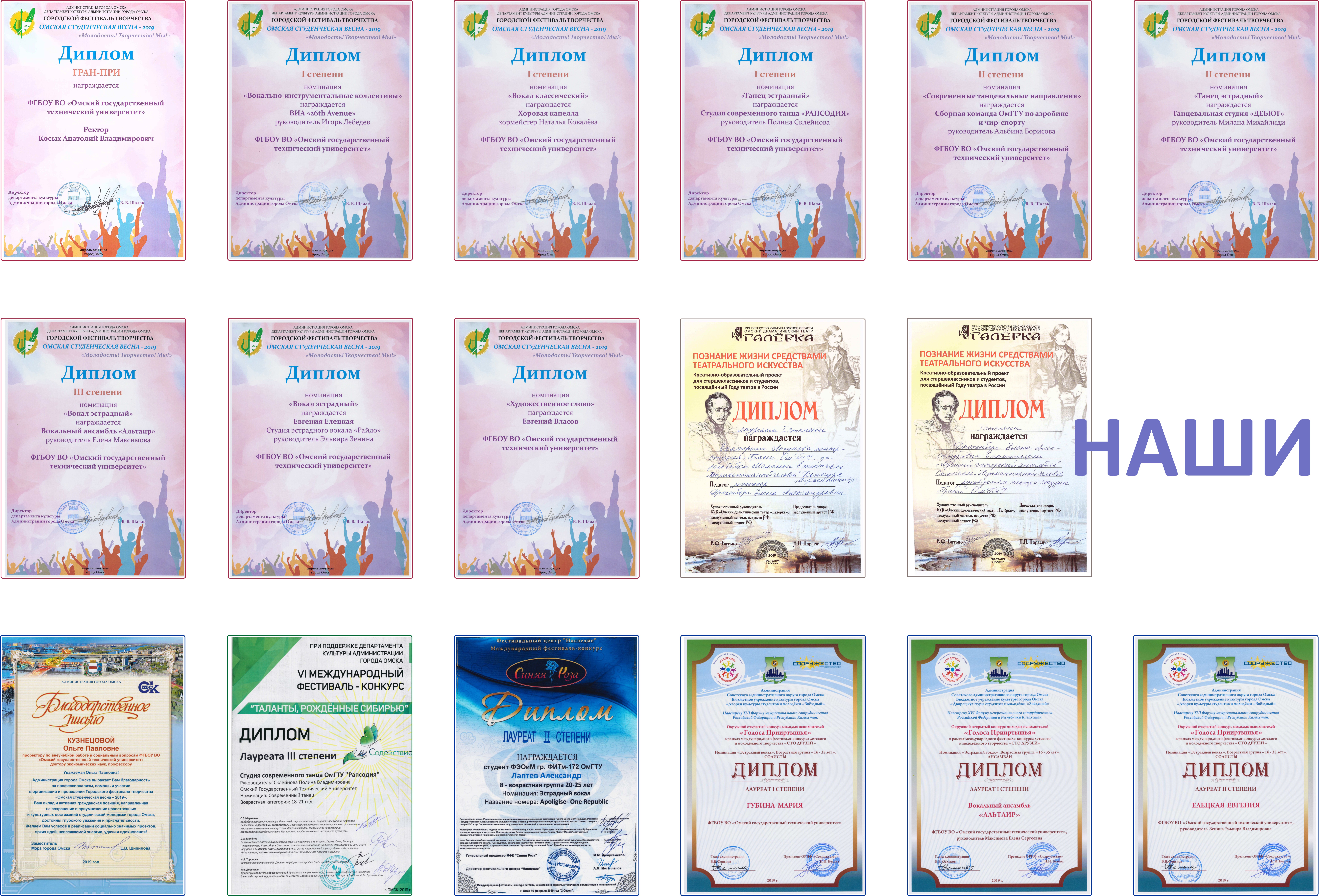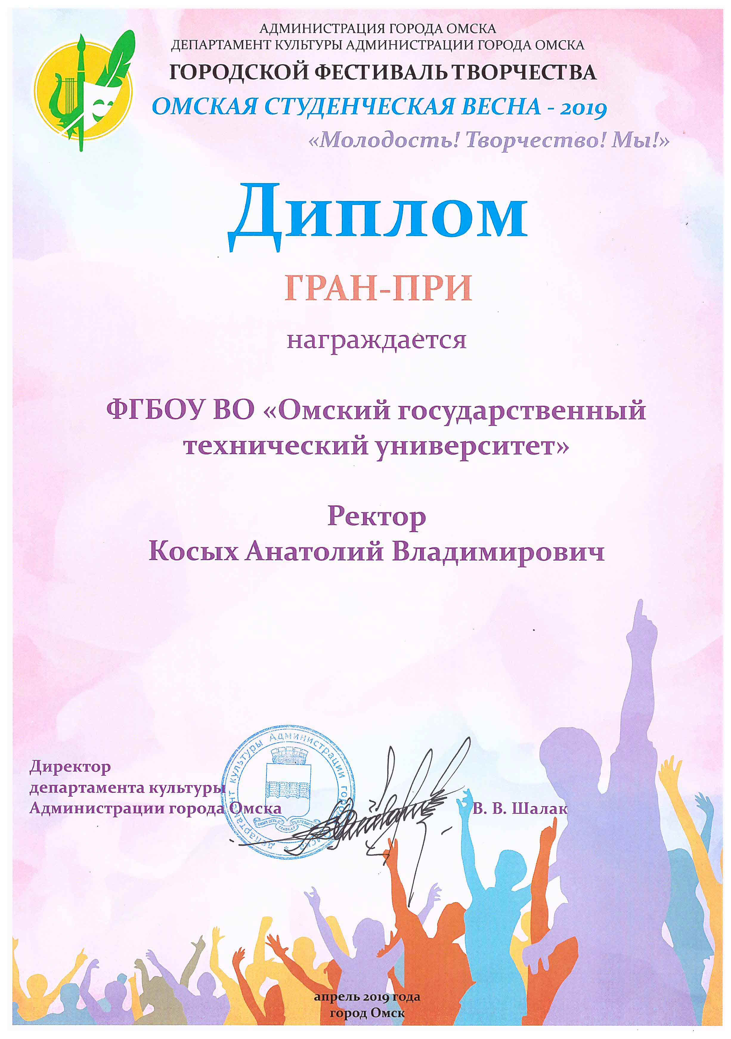 В 2019 году в рамках городского фестиваля "Студенческая весна" программа студенческого клуба ОмГТУ "Все зависит от нас самих" (режиссер Ольга Ясас) завоевала Гран - при среди учреждений высшего образования Омской области.